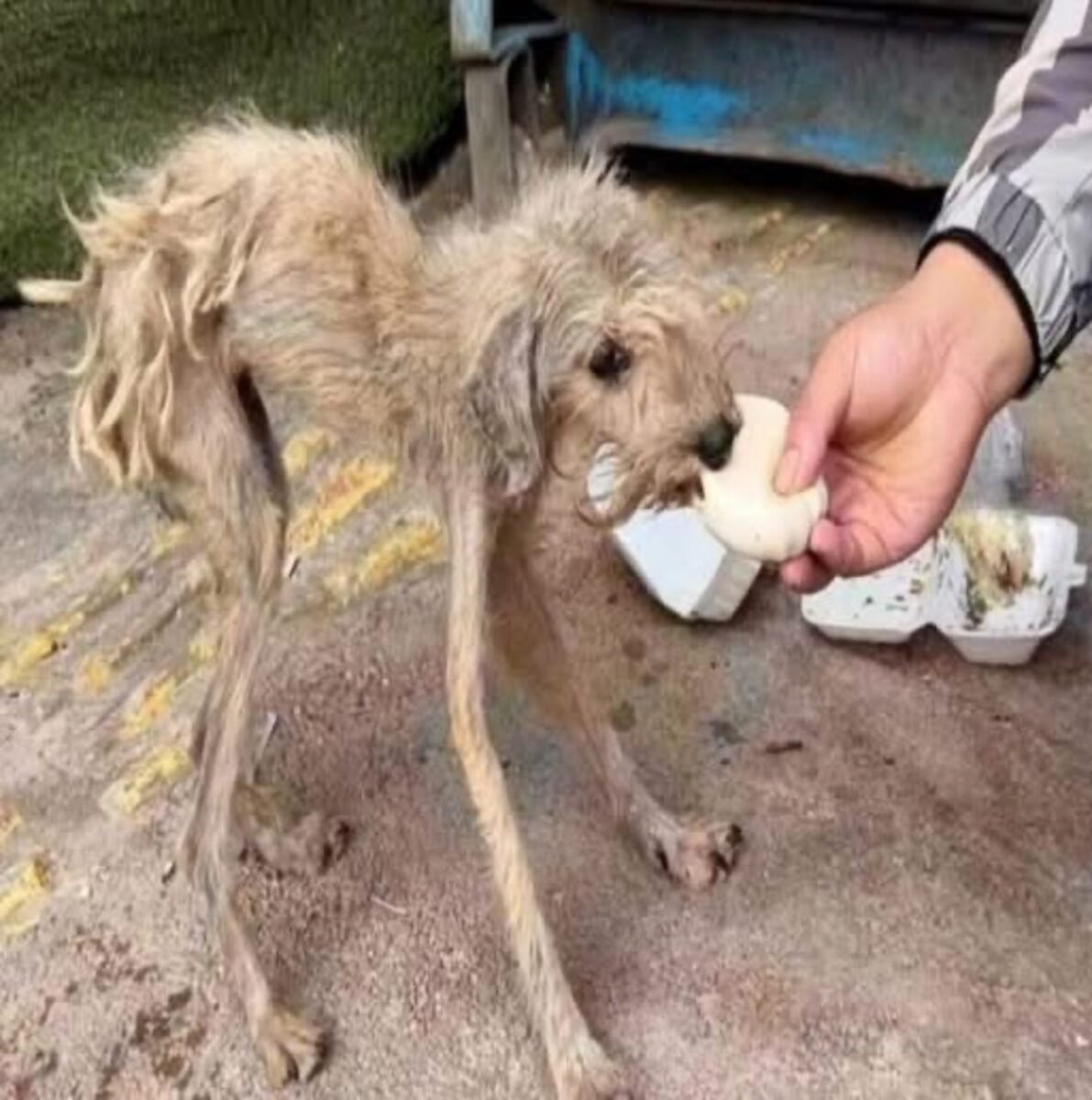 Elle se tenait près d’une vieille poubelle, penchée comme l’ombre d’un chien autrefois fier. Son pelage était emmêlé en touffes serrées et sales, révélant des côtes pointues, et ses yeux – les mêmes qui autrefois, peut-être, brillaient de bonheur – étaient maintenant ternes, fatigués et pourtant… assoiffés de vie.