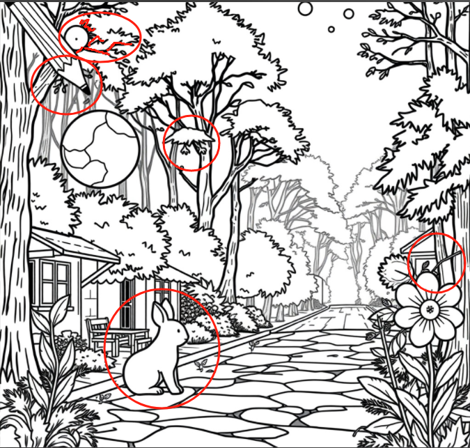 Observez les arbres qui entourent la scène. Les arbres sont l’un des endroits où les changements se produisent le plus souvent dans les jeux « Trouvez les différences ». Dans ce cas, certaines branches pourraient manquer, ou le nombre de feuilles pourrait différer entre les deux images. Les ombres projetées par les arbres pourraient également être légèrement modifiées, rendant difficile la détection de ces différences.