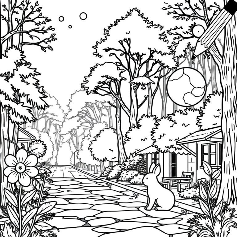 Examinons l’image de plus près. Le décor est un chemin paisible, bordé d’arbres, de fleurs et d’arbustes. Un lapin curieux est assis au premier plan, semblant observer le monde qui l’entoure. À l’arrière-plan, des arbres au loin et un soupçon de paysage lointain. Tout semble serein, mais en analysant la scène, vous découvrirez rapidement que les choses ne sont pas aussi simples qu’il y paraît.