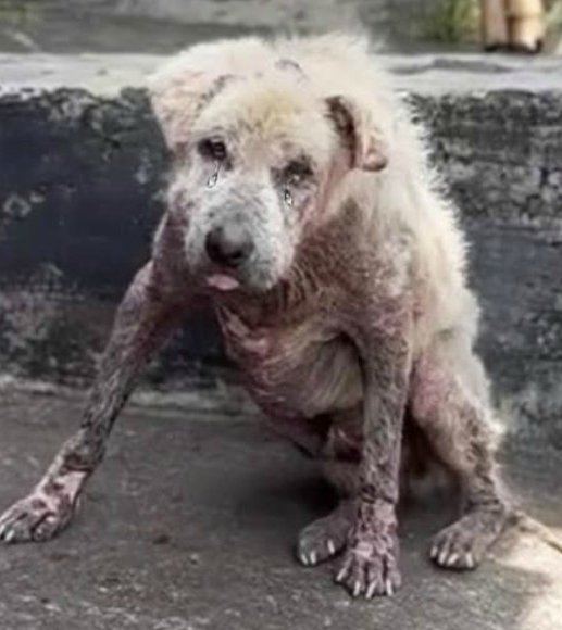 Il était assis près du mur de béton, collé contre lui comme s’il pouvait le protéger. Sa fourrure avait depuis longtemps perdu sa blancheur ; à sa place, il y avait des touffes, comme des cendres après un incendie. Sa peau était craquelée, enflammée, couverte d’ulcères. Ses yeux… Seuls ses yeux étaient encore vivants. Mais il n’y avait plus de feu en eux. Il n’y avait même plus de peur. Il n’y avait qu’une chose : le silence. Celui qui apparaît quand le cœur cesse d’attendre. Il ne croyait plus aux gens, ni aux miracles, ni au lendemain.
