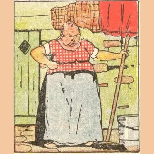 Que ce soit l’humour dans l’expression de la vieille dame, le symbolisme de sa tâche de ménage ou les choix de couleurs qui font ressortir l’illustration, cette image capture un élément universellement identifiable : les tâches ménagères, la vie de famille et les personnages qui la rendent vivante. Grâce à ces œuvres intemporelles, nous pouvons apprécier les petits détails qui ont enrichi et enrichi la vie, bien avant l’effervescence de la vie moderne.➕