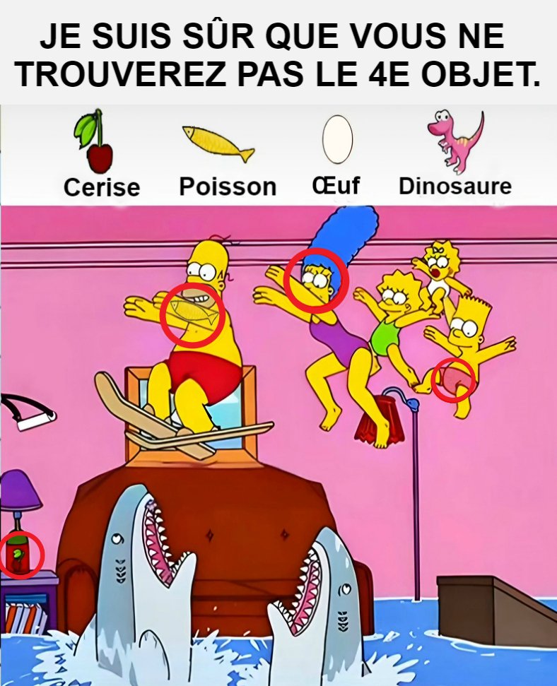 À première vue, cette image contient beaucoup d’objets cachés. Mais quelque part, une cerise, un poisson, un œuf et un dinosaure se cachent.