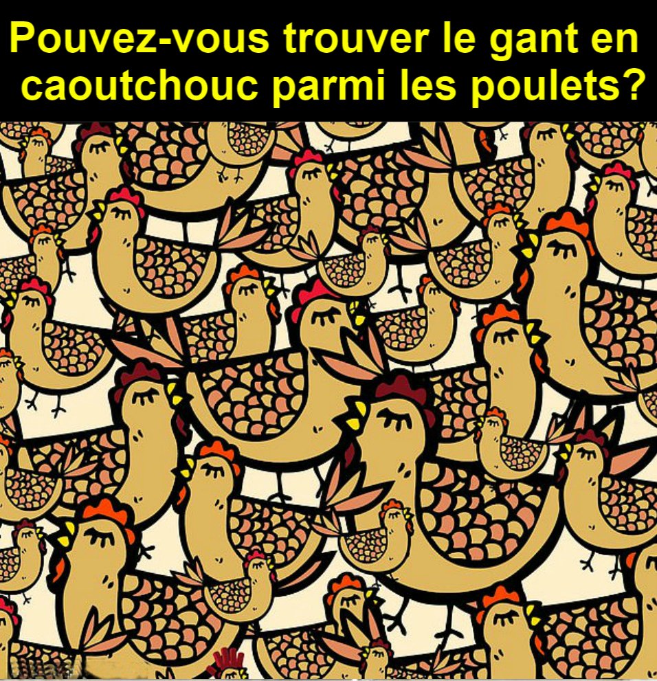 Ce casse-tête vous met au défi de trouver le gant en caoutchouc parmi les poules. Parviendrez-vous à le trouver ?