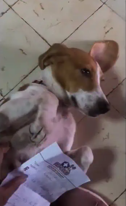 On a retrouvé une corde autour de son cou, témoignage t.r αgique de la cr.u αuté qu’elle avait subie. Douce mais épuisée et infestée de tiques, Nona attendait en silence qu’on la remarque. Heureusement, des personnes bienveillantes l’ont remarquée et ont immédiatement organisé son transport vers une clinique.