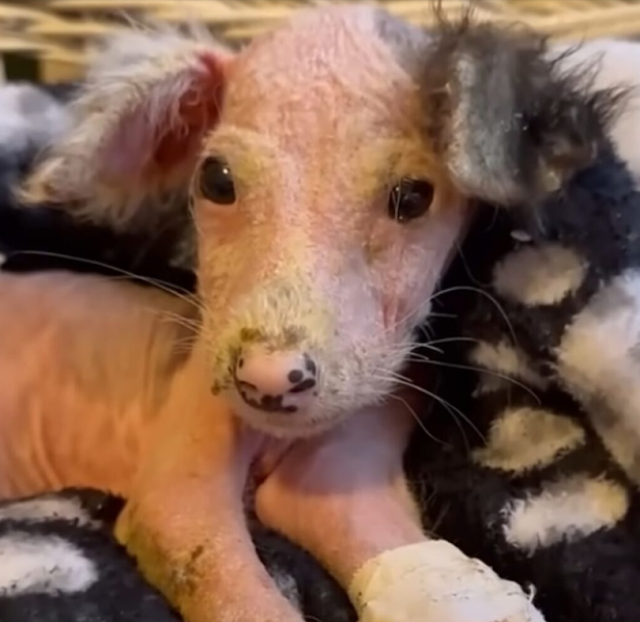 La peau du chiot était atteinte d’une démodécie sévère : il ne restait que des poils isolés, et sa peau était sèche et craquelée. Je ne pouvais m’empêcher de penser à ceux qui l’avaient abandonné ; une telle indifférence est plus douloureuse que la d․o ∪leur physique.