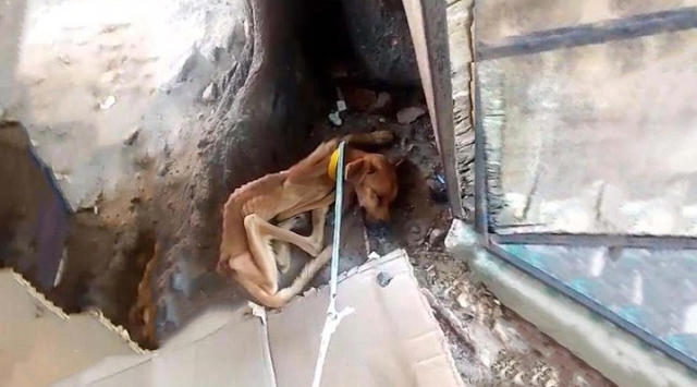 Les sauveteurs ont répondu à un appel de détresse concernant un chien en laisse et ont été confrontés à une scène déchirante : un chien émacié, à peine capable de se tenir debout, enchaîné dehors.