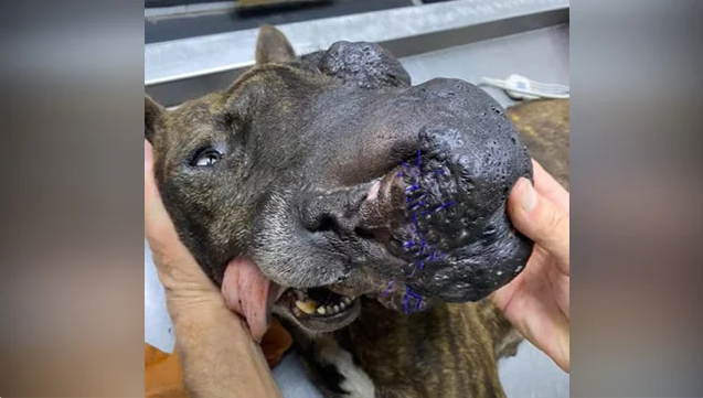 L’histoire d’Oliver est une histoire de so.u ƒfrance, de courage et de la façon dont une simple intervention humaine peut redonner vie. Lorsqu’il a été trouvé, le chiot était enchaîné et abandonné : une tumeur de près de 8 kg s’était développée dans sa gueule, l’empêchant presque totalement de manger et de boire.