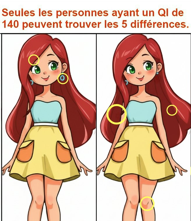 Seules les personnes ayant un QI de 140 peuvent trouver les 5 différences.