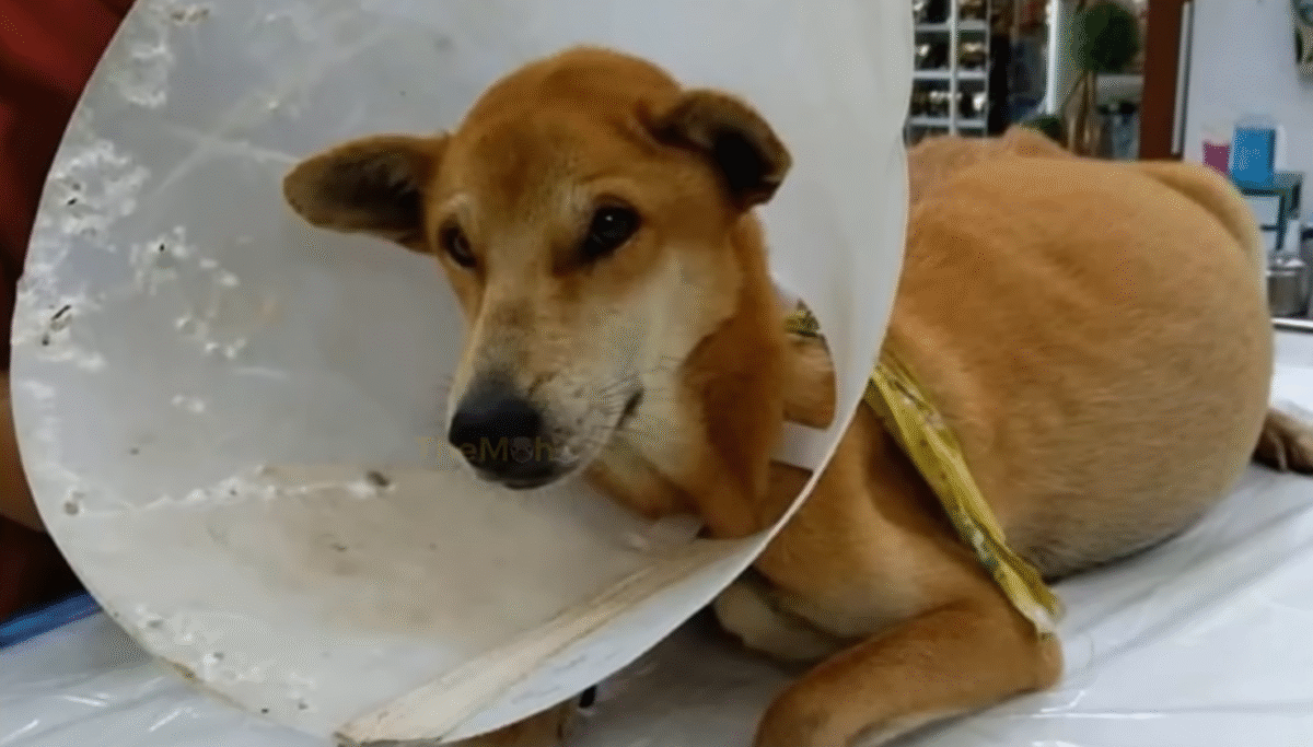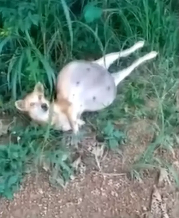 Une pauvre chienne, le ventre tellement gonflé qu’il semblait prêt à éc.l αter.