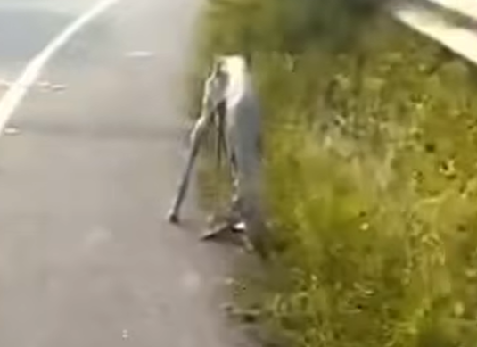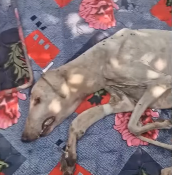 Une femme a trouvé une chienne errante qui luttait pour survivre sur une route déserte.