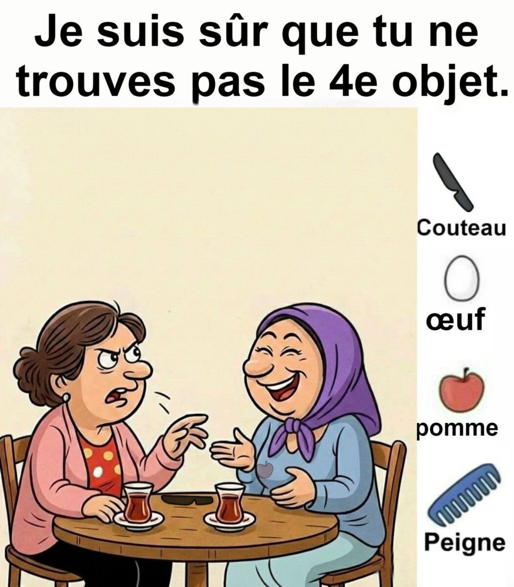 Trouvez Couteau, Œuf, Pomme, Peigne.