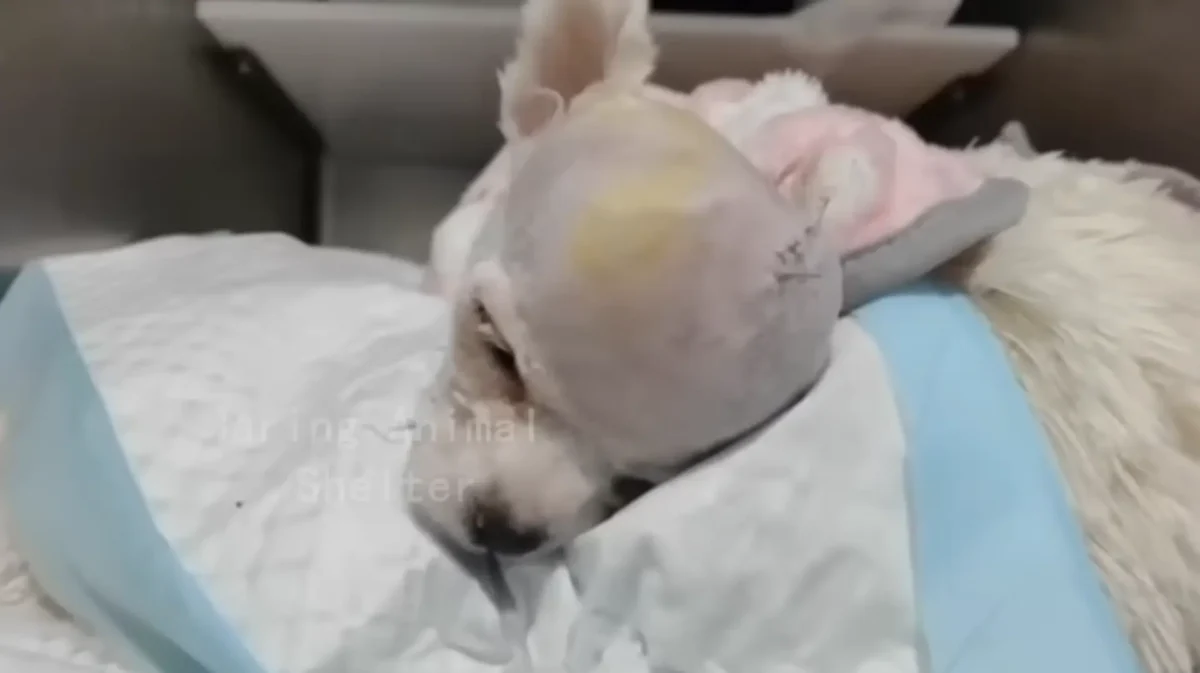 Quelques jours plus tard, le chiot a été opéré.