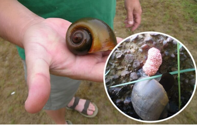 Les spécialistes sont arrivés rapidement, ont examiné la zone et ont confirmé : des ampullaires avaient commencé à se multiplier à proximité — quelqu’un avait probablement relâché des escargots décoratifs dans l’étang sans connaître les conséquences.