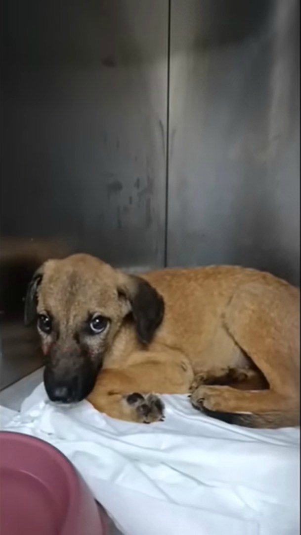 Après des heures de recherche, nous l’avons enfin trouvée : une petite chienne fragile, le ventre gonflé et une p.l αie ouverte et d.o ∪loureuse à la queue, infestée de fourmis et de parasites.